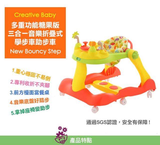 【美國Creative baby】多功能音樂折疊式三合一學步車/助步車